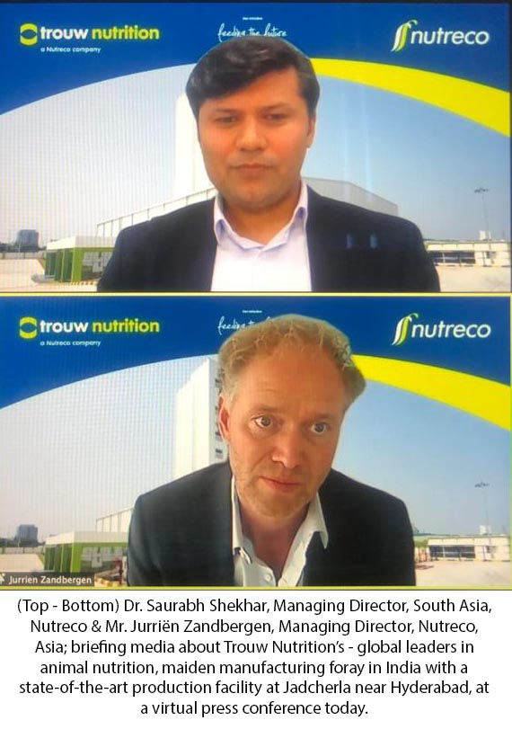 Netherlands based Nutreco company announced its maiden manufacturing foray in India with a state-of-the-art production facility at Jadcherla near Hyderabad yesterday. Nutreco, through its two reputed brands, Trouw Nutrition and Skretting, is a global leader in animal and aqua nutrition, bringing innovative feed additives, premixes and nutritional services. Trouw Nutrition is the animal nutrition division of the 125 year old Dutch family owned SHV Holdings.