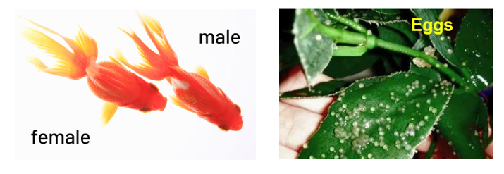 Readiness to breed in Goldfish can be identified clearly, when males display white “tubercles" on their gills and fins and females look fatter than usual. The males also exhibit a spawning behavior of chasing the females around the tank and poking their abdomen. When the female is in full ripeness, it swims to a planted area of the tank and/or near the egg collectors and lay sticky eggs, which attach themselves to the plants and / or egg collectors. The chasing males immediately swim over eggs and releases sperm to fertilize them.