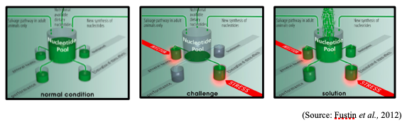 In adult animals through the salvage pathway or de novo synthesis, nucleotides are produced by reuse of nucleic acids from dead cells without loss of its functions (Fustin et al., 2012). In this situation, NT act as a non-nutritional supplement only. At this juncture, Nucleotides have become essential nutrients or potential functional feed supplements to manage the harmful effects of stress and the expense of performances for growth, health, reproduction and development.