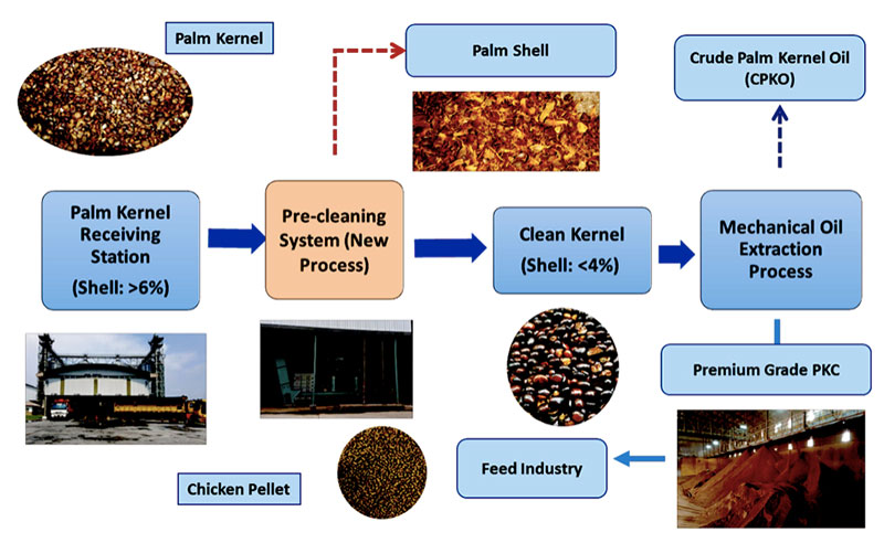 PKM is known as an energy-feed and also its chemical composition is similar to that of copra meal, rice bran or corn gluten feed. It is a highly fibrous and medium grade protein feed(Table. 1), hence most suited to ruminant or rabbit feeding.The wastes and residues from the palm oil extraction are cellulosic organic biomass with high nutrient content.