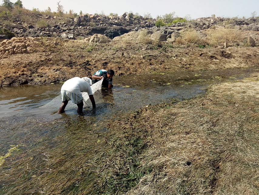 Prawn fishery along Tapti River is mostly subsistence level in nature and occurs as a seasonal activity, mainly during pre-monsoon and in early monsoon season along some stretches; the latter being only associated to stretches receiving delayed and low intensity rains. In pre-monsoon the prawn fishing stretch is characterized by stagnant pools and glides with relatively high water transparency (Transparency >50 cm).