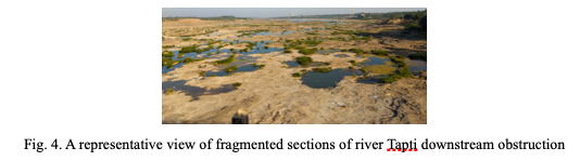 The onset and intensity of monsoon rains serves as supply to seasonal streams and interplays with the seasonal dynamics of macrohabitats. Subsequently, the river turns southwards in Jalgaon District, Maharashtra where it meets with its first major tributary, Purna. The length of river upstream of this confluence point covering Burhanpur in Madhya Pradesh and downwards till Sarangkheda is categorized as middle stretch. For a major part, this stretch is characterized by the presence of natural and artificial deep pools (reservoirs) as well as run, with series of fragmented pools and riffles occurring at intervals downstream of anthropogenic structures (dams and barrages) on main channel. The lower stretch of the river is characterized by dominance of perennial sections of deep runs and pools present almost entirely in western border of Maharashtra and whole of Gujarat.