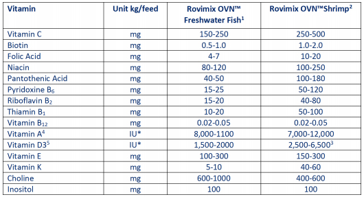 Vitamins are considered essential nutrients in fish/shrimp feeds