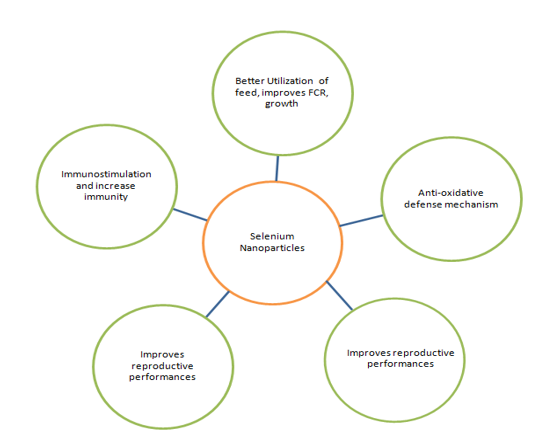 For commercial farmers, faster growth and reproductivity is an imperative aspect. While the role of selenium nanoparticles in increasing the growth of fishes has already been an established fact, their positive effect on reproductive maturity is also demonstrated. Similarly, selenium nanoparticles are effective in limiting oxidative stress. Fishes often produce reactive oxygen species (ROS) which cause several complications like rapid aging, retarded growth, etc. Administration of selenium nanoparticles reduces the adverse consequences of ROS by stimulating the production of various antioxidants enzymes like catalase, glutathione peroxidase, super oxide dismutase (SOD) etc. Using these selenium nanoparticles with feed can therefore be a good source of tweaking the growth performances along with reproductive maturity.