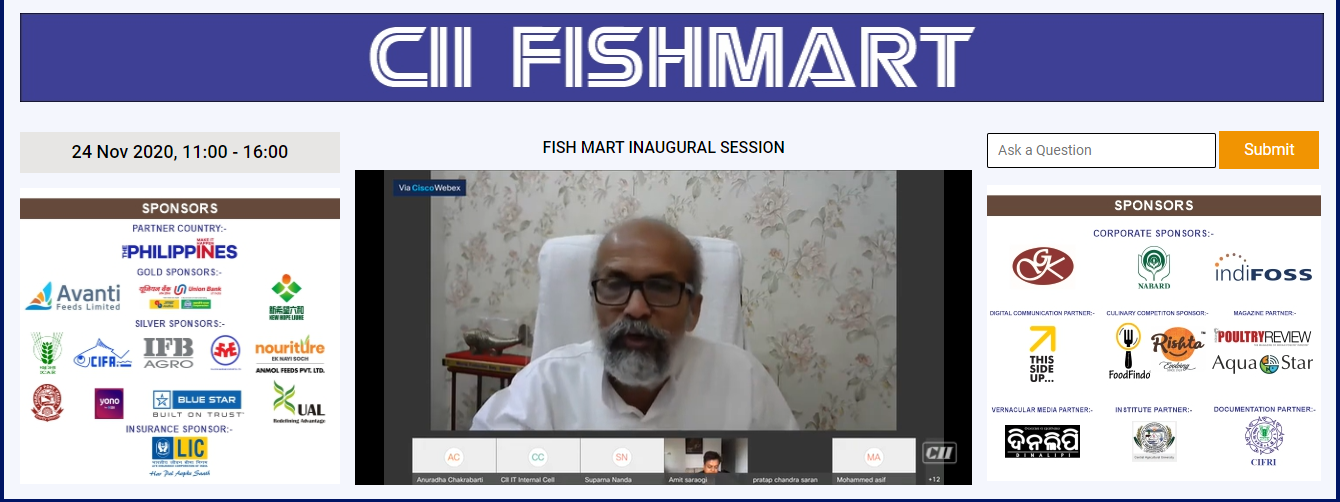 Inland fish culture has huge potential to grow under fisheries industries. Clustered models need to be developed to support this growth’, said Mr Pratap Chandra Sarangi, Hon'ble Minister of State, Ministry of Fisheries, Animal Husbandry & Dairying, Government of India at the inaugural session of Fish Mart, a seven-day virtual session organized by CII for the east and north east states of India starting from 24 November 2020. The Hon'ble Minister also spoke at length about Pradhan Mantri Matsya Sampada Yojana which has been announced to enhance fish production to 220 LMT with an investment of over Rs.20,000 crores in the next five years. Under this scheme, 30% of subsidies will be provided to the general category investors and 60 % subsidy will be given to SC, ST category investors.