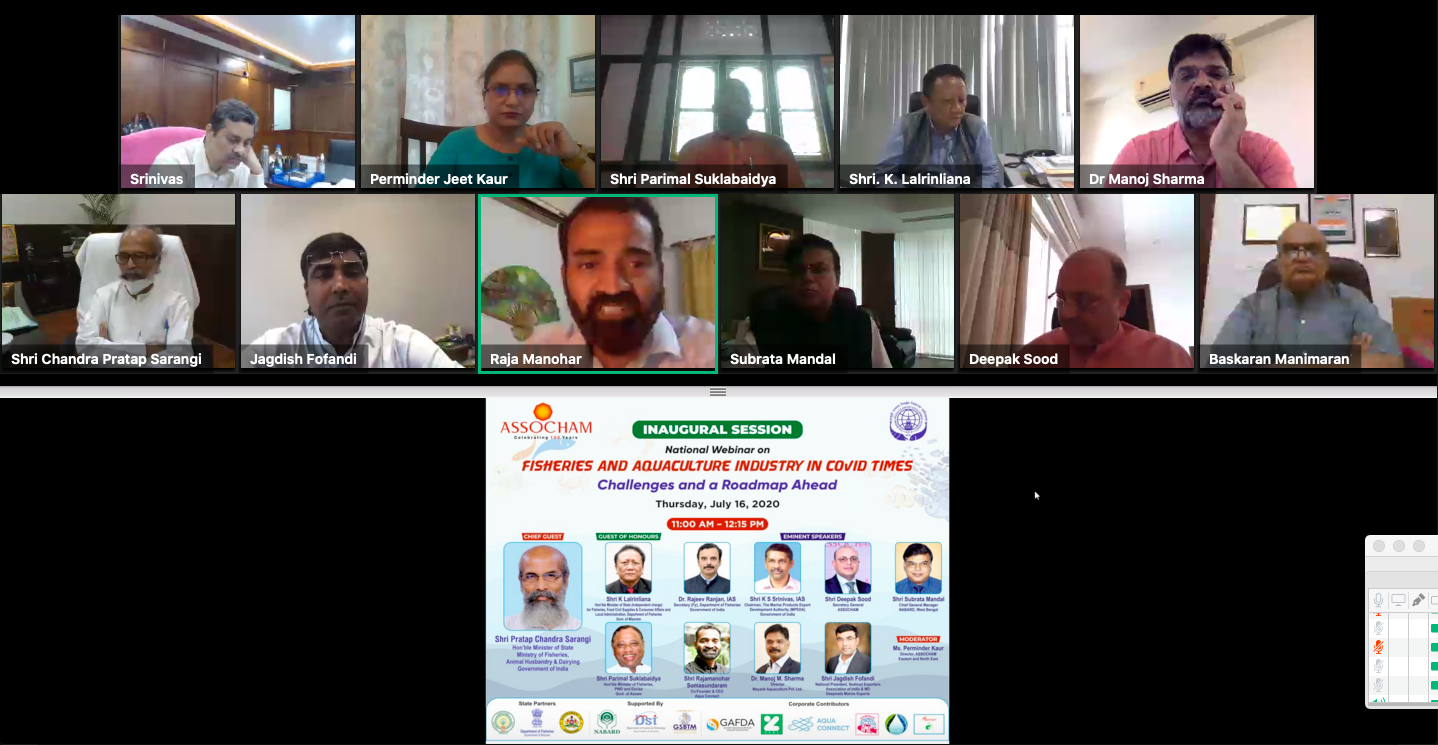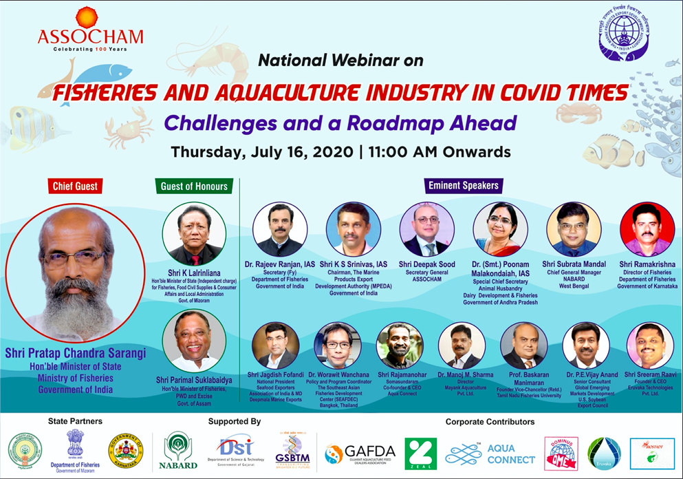 This discussion was held in a webinar was organised by the ASSOCHAM on “Fisheries and Aquaculture Industry in COVID Times: Challenges and a Roadmap Ahead on July 16, 2020. Along with the presence of Hon’ble MoS, Fisheries, Shri Pratap Chandra Sa-rangi as a Chief Guest. The digital session has gained more value and insights with the presence of Hon’ble Minister, Environment and Forests, Excise and Fisheries, Govt of Assam, Shri Parimal Suklabaidya and Hon’ble Minister of Fisheries, Govt of Mizoram Shri K. Lalrinliana as a Guest of Honour.